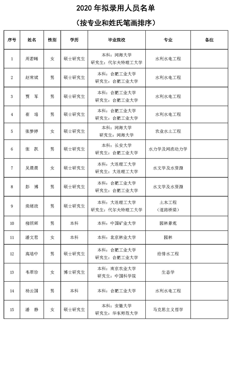 根據公司2020年招聘計劃,經過資格審查、面試、體檢等程序,確定周若晞等15人為公司擬錄用人員(名單附后)。現予公示。