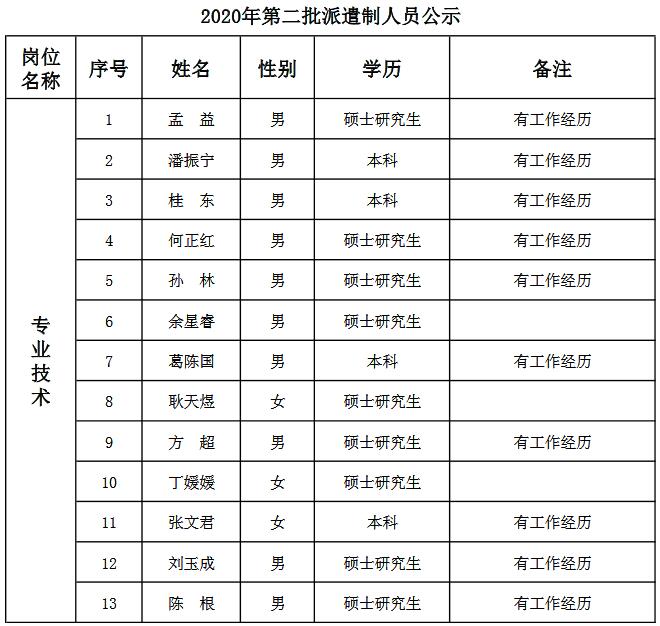根據公司2020年第二批派遣制人員招聘計劃,經過報名、資格審查、面試、體檢等程序,孟益等13人(名單附后)由合肥中晟卓達人力資源管理有限公司簽訂勞動合同派遣我公司工作。現予公示。