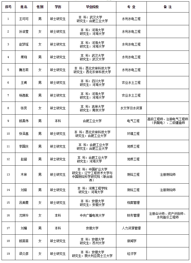 2019年擬錄用人員名單(第一批)