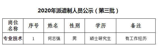 2020年派遣制人員公示(第三批)