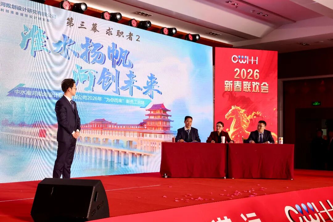 長淮千里風(fēng)正勁,策馬揚(yáng)鞭再向前!2月8日,公司舉辦2026年職工新春聯(lián)歡會。淮委黨組成員、副主任吳貴勤出席聯(lián)歡會并致辭,淮委規(guī)計處處長倪大銀受邀參加,公司黨委書記、董事長孫勇代表公司黨委、領(lǐng)導(dǎo)班子致辭,公司黨委副書記、總經(jīng)理肖建峰,公司領(lǐng)導(dǎo)班子全體成員出席聯(lián)歡會,同全體員工歡聚一堂,喜迎新春共賀佳節(jié)。超過300名員工觀看了此次新春聯(lián)歡會。