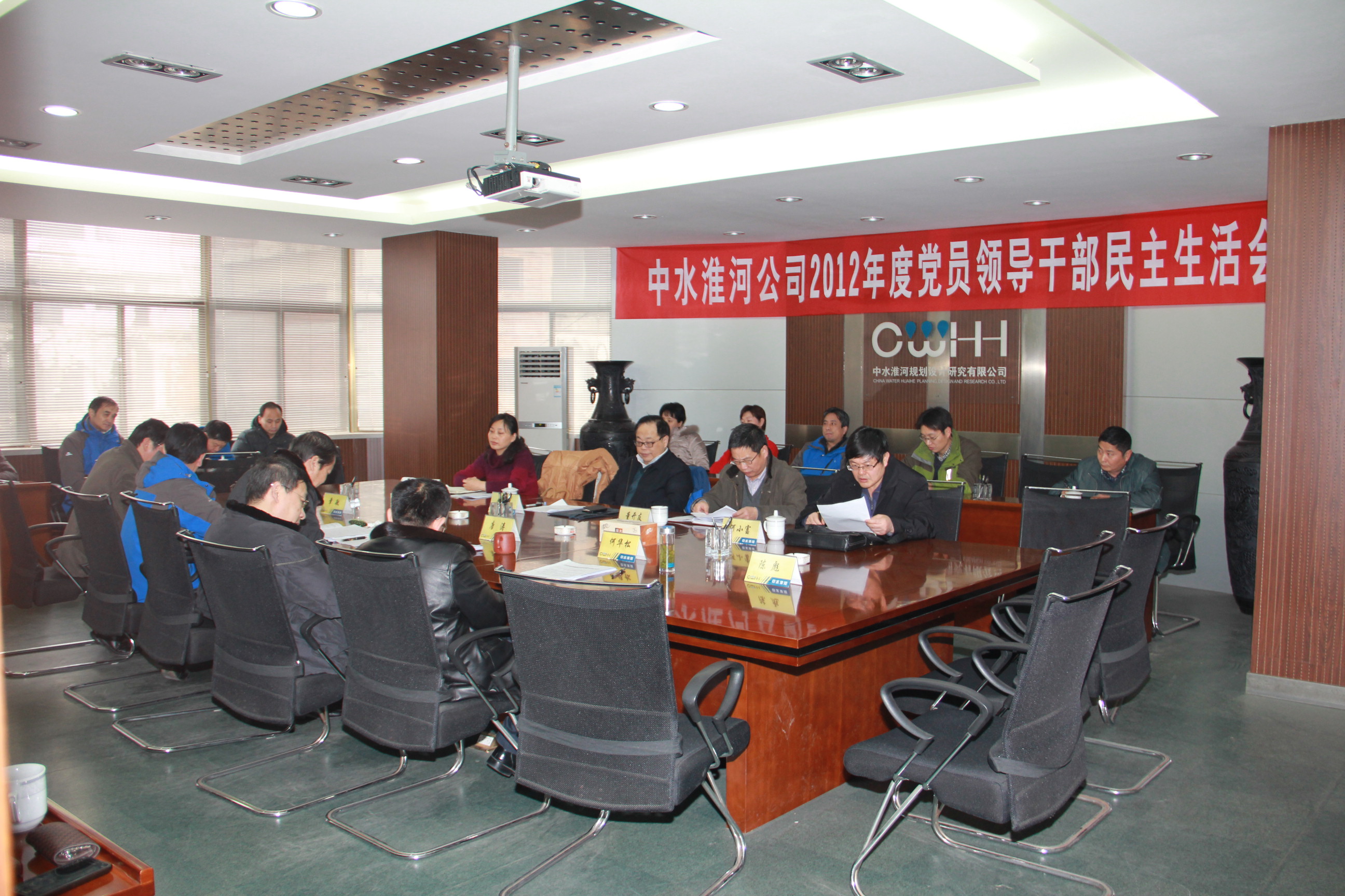 1月15日下午,公司黨委召開了2012年度黨員領導干部民主生活會,淮委黨組書記、主任錢敏出席會議并作重要講話。萬隆董事長、唐濤總經理、章敏副總經理、何華松副總經理、周如龍副書記、陳彪總規劃師參加會議,公司黨委委員、副總工,各部門主要負責人列席了會議。