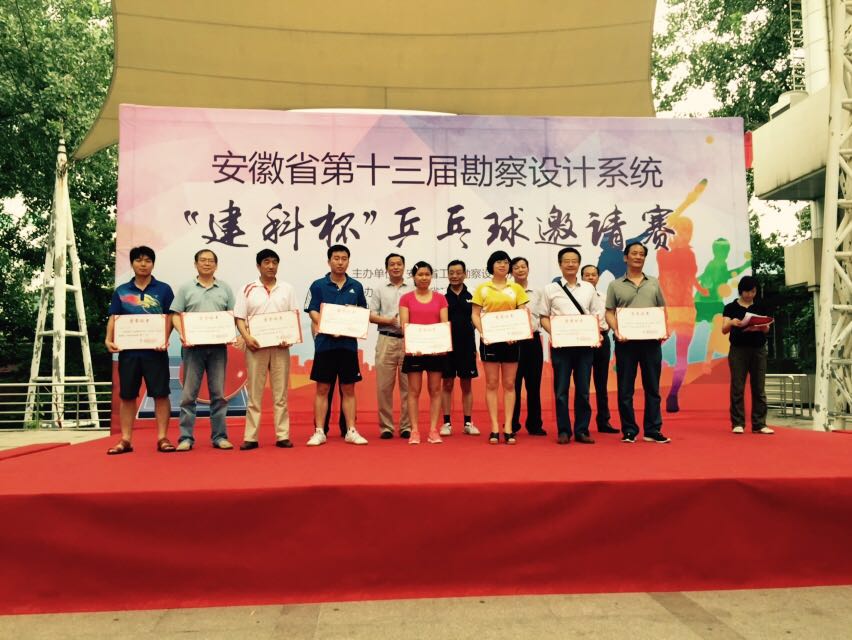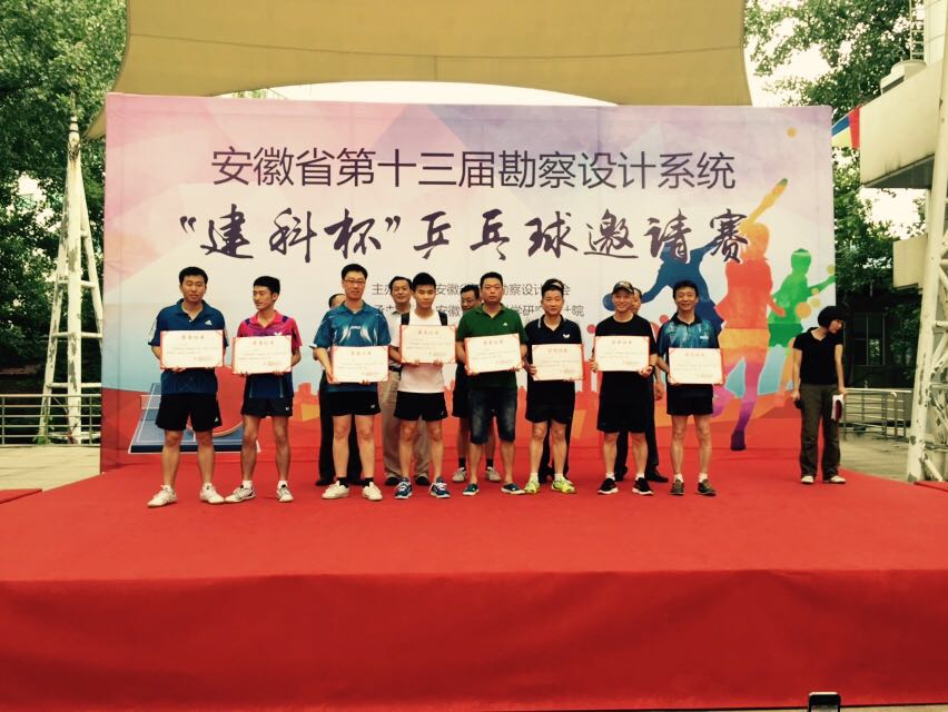 2015年7月4日至5日,安徽省第十三屆勘察設計系統“建科杯”乒乓球邀請賽在合肥舉行,我公司代表隊參加了比賽。比賽設團體賽、男子單打、女子單打。我公司代表隊取得了團體第六,男子單打冠軍、第四名,女子單打第四名的優異成績。