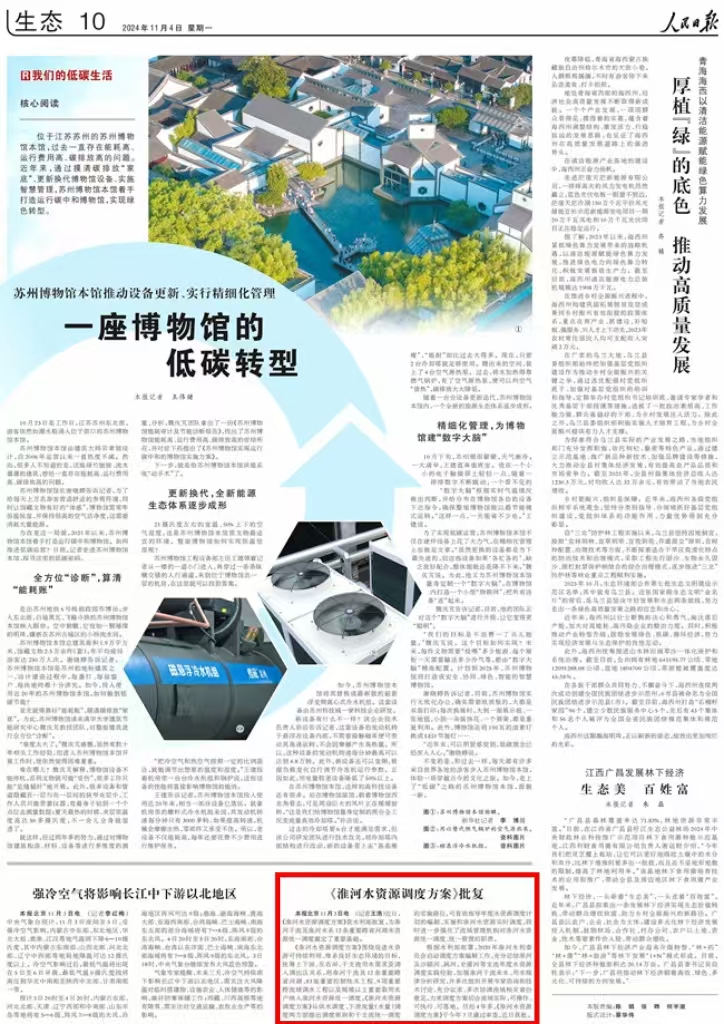 近日,由公司編制的《淮河水資源調度方案》獲水利部批復,為淮河干流及淮河水系12條重要跨省河湖水資源統一調度奠定了重要基礎。這是水利部首次批復淮河水資源調度方案,對落實水資源剛性約束制度,促進流域水資源可持續利用具有重要意義?!度嗣袢請蟆?span lang="EN-US">2024年11月4日第10版刊登《<淮河水資源調度方案>批復》文章。