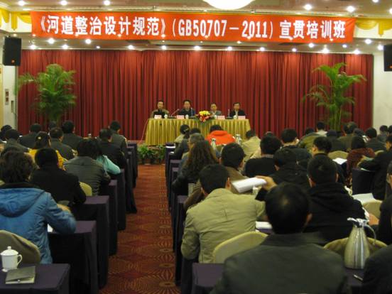 2013年1月23~25日,水利部水利水電規(guī)劃設(shè)計(jì)總院在昆明市舉辦了由我公司主編的《河道整治設(shè)計(jì)規(guī)范》(GB50707-2011)宣貫培訓(xùn)班。有關(guān)流域機(jī)構(gòu)、省(市)水利廳(局)、有關(guān)流域委院、中水電有關(guān)設(shè)計(jì)院和部分省(市)設(shè)計(jì)單位的項(xiàng)目管理和技術(shù)骨干近150人參加了培訓(xùn)。